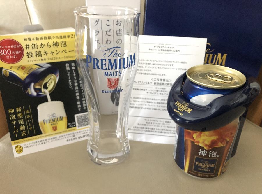 ザ・プレミアム・モルツ 新型電動超音波式神泡サーバー体感キット -新型電動式神泡サーバー -うまいお店のこだわりグラス(340ml) -ザ・プレミアム・モルツ(350ml)