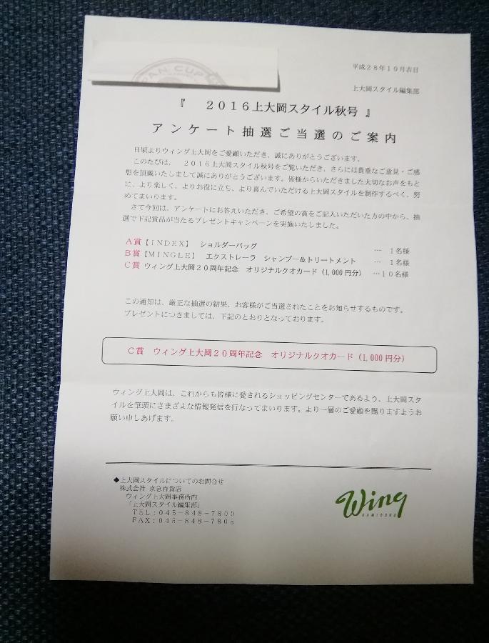 上大岡スタイルというフリーペーパーのアンケートで当選しました。 (ちょいぽちゃ)