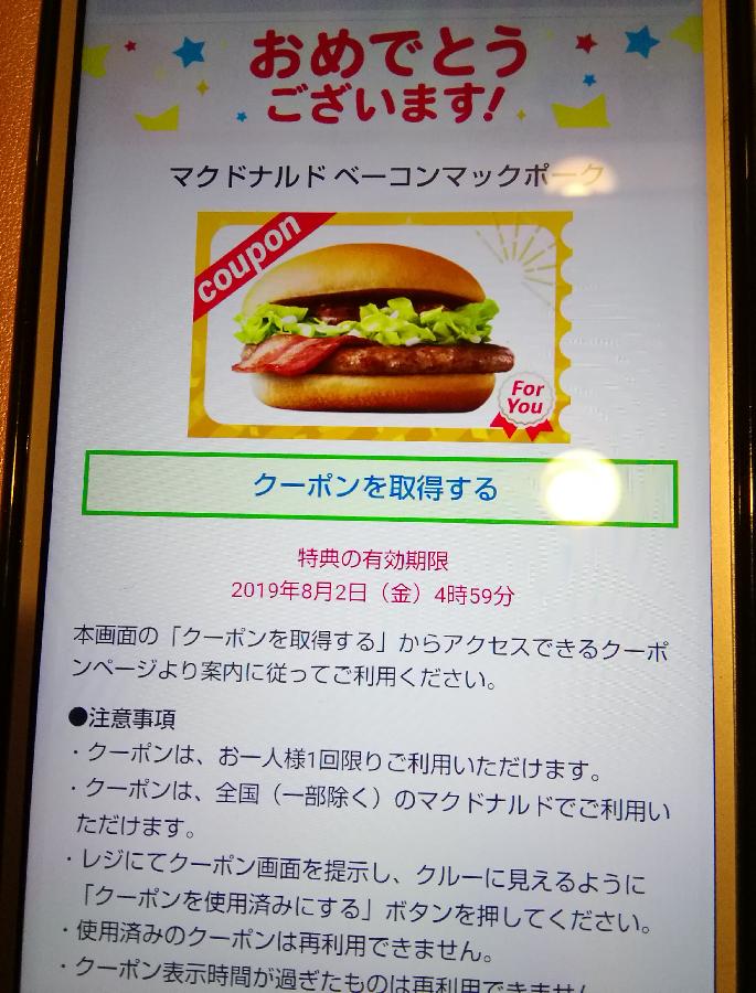 キャンペーン:マクドナルドマックベーコンポークが当たるキャンペーン