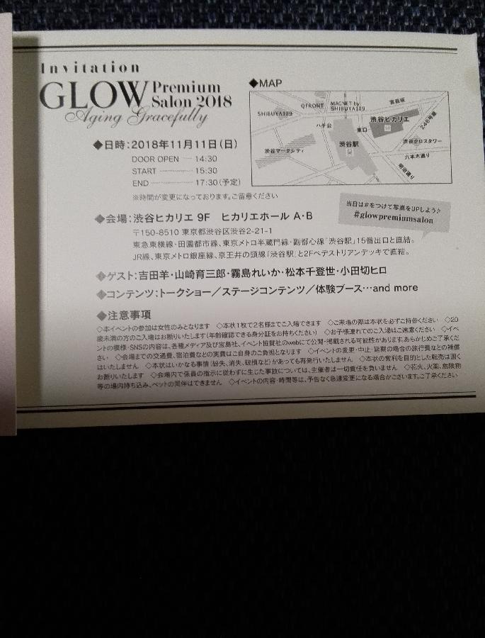 2018年11月GLOWプレミアムサロンin渋谷ヒカリエ招待券