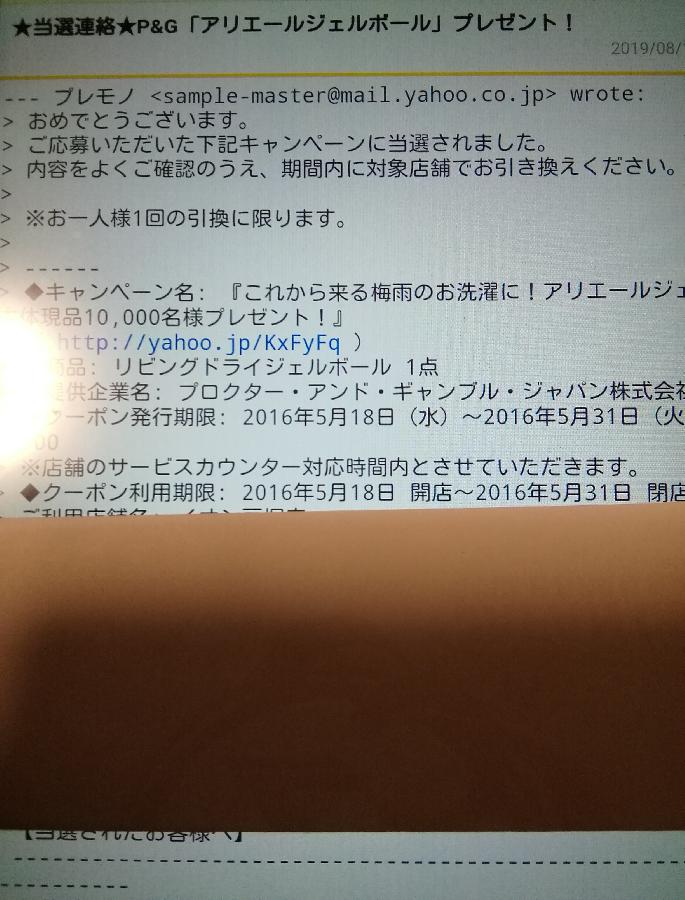 当選品一覧当選日順