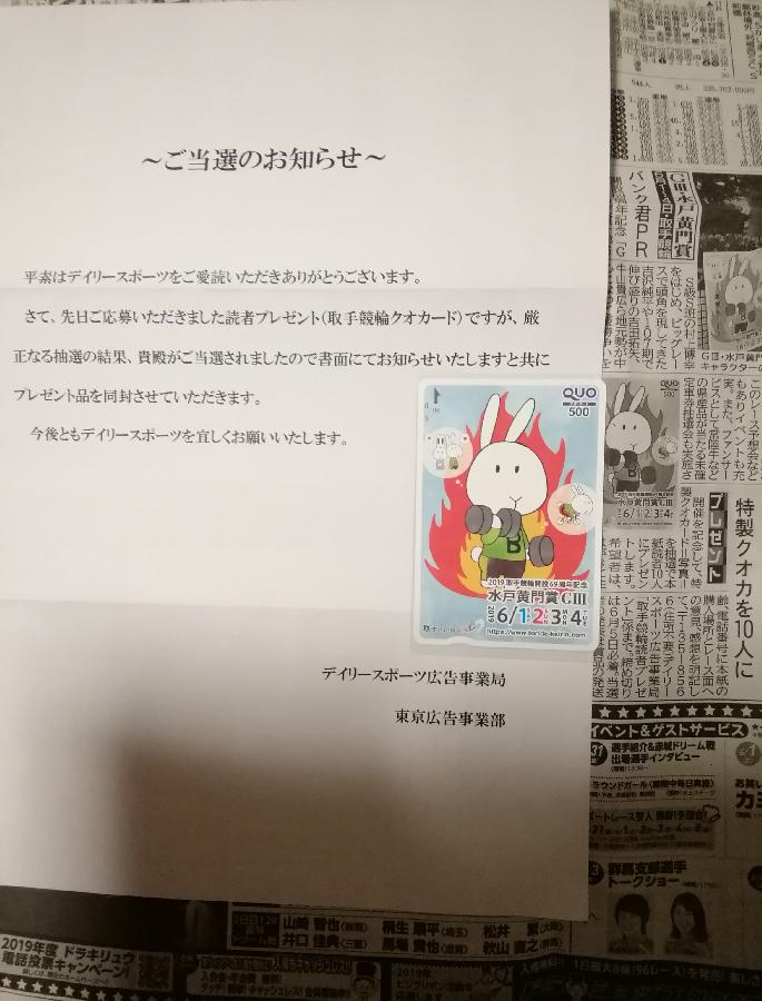 取手競輪69周年記念 水戸黄門賞クオカード500円分