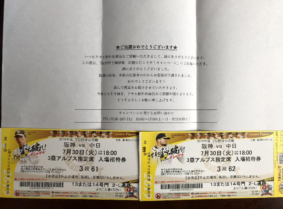 阪神vs中日 アルプス指定席入場招待券