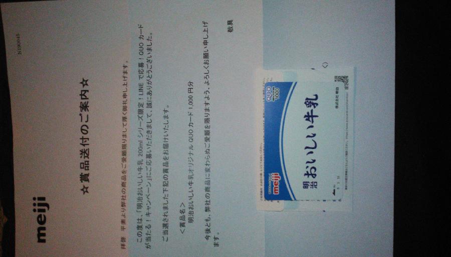 明治おいしい牛乳オリジナル QUO カード1000円分
