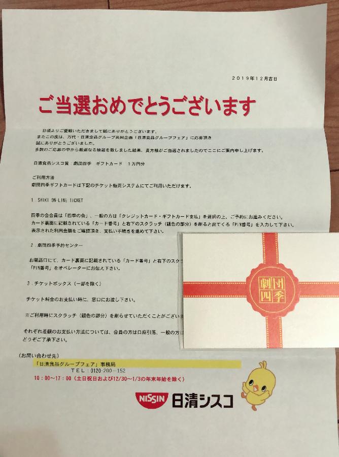 劇団四季ギフトカード 1万円