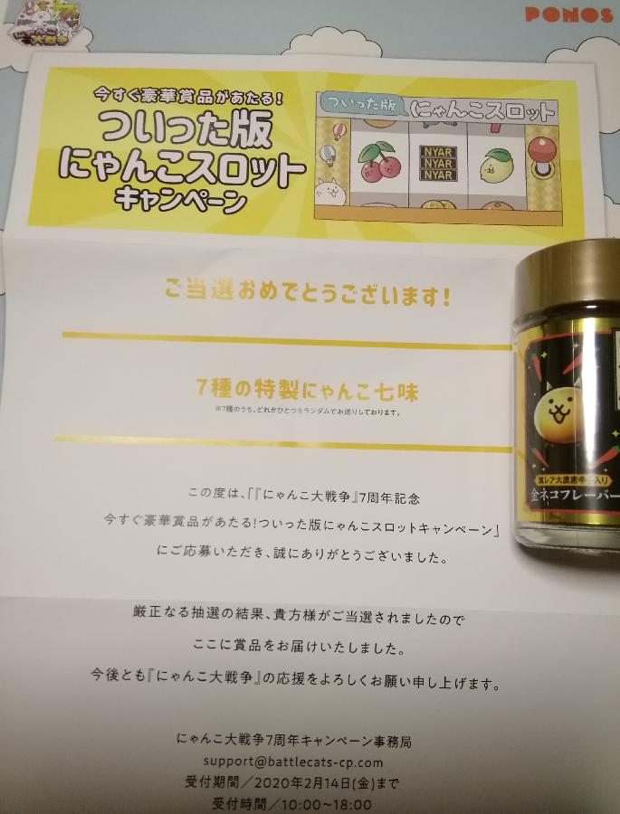 ツイッターで当たったにゃんこ七味が届いたにゃ。バジル、山わさび、島こしょう、コリアンダー等が入った変わりだね七味です。何にかけるか考え中です。 (ちょいぽちゃ)