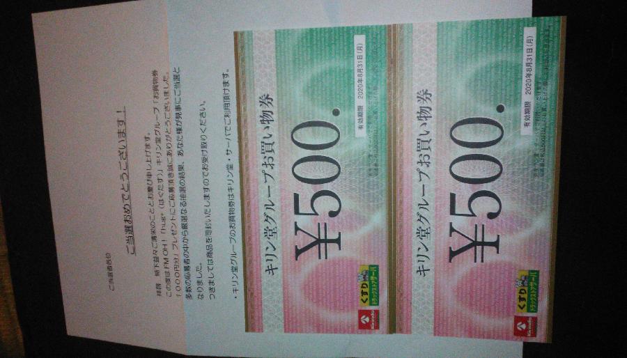キリン堂お買い物券 1000円分