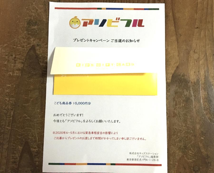 アソビフルという子どもや家族が楽しめるアプリに登録して、記事にイイネ!を付け、貯まったポイントで懸賞に応募しました。商品券で子どもにオモチャが買えるので有り難いです。 (雪猫)