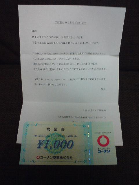 コーナン商品券1,000円分