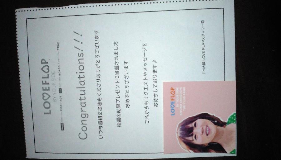 番組でメッセージが読まれて、いただきました! (ミリネコサン)