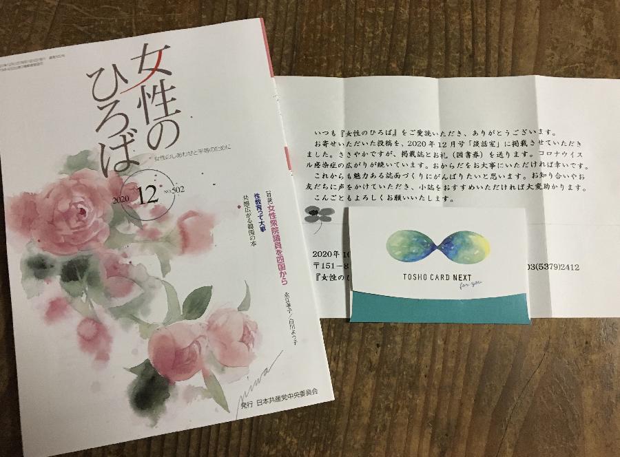 『女性のひろば』の「談話室」のコーナーに投稿した文章が掲載され、図書カードをいただきました。好きな本が買えるので嬉しいです。ありがとうございます。 (雪猫)