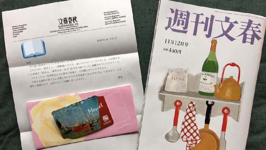 「週刊文春」さんの投書コーナーには何度か投稿して今回初めて掲載していただけました。ありがとうございます。図書カード大切に使わせていただきます。 (雪猫)