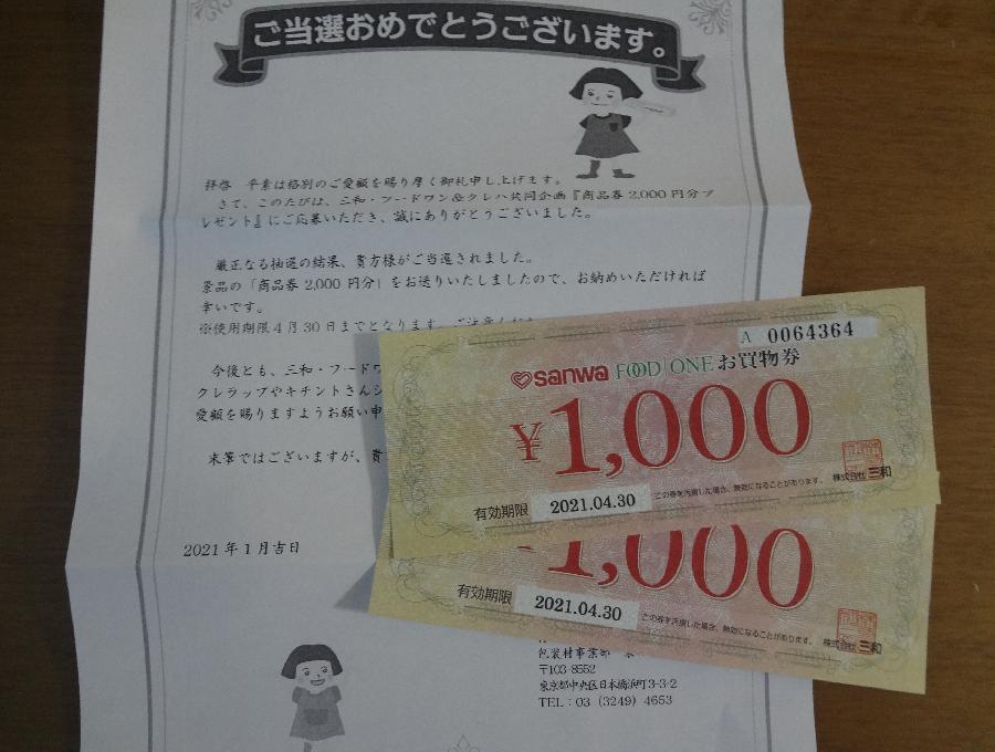 キャンペーン:三和・フードワン&クレハ共同企画「商品券2000円プレゼント」