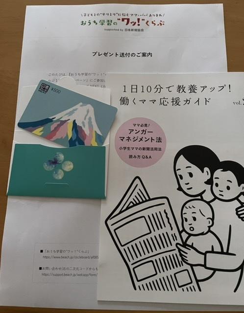 コメントありがとう賞 図書カードNEXT(カード)500円分、働くママガイドvol2