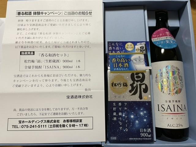 『香る和酒セット』松竹梅「昴」生貯蔵酒900ml×1本、全量芋焼酎「ISAINA」900ml×1本