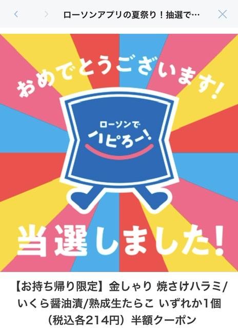 キャンペーン:抽選で当たる!ローソンアプリ 【お持ち帰り限定】最大半額クーポン祭り