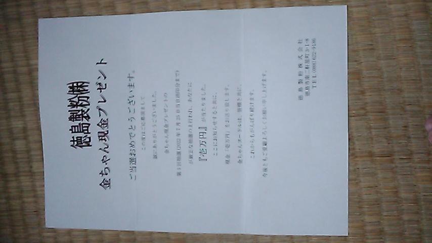 クローズド☆一口☆ハガキ応募☆商品の裏面に付いている金鶴シールを5枚貼ったハガキで応募しました!初めてあったので、凄く嬉しかったです(^-^) (ミリネコサン)
