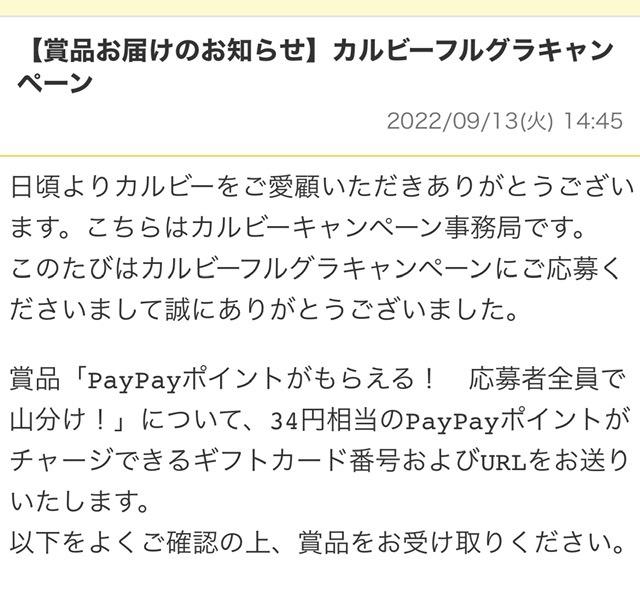 キャンペーン:カルビーフルグラキャンペー 「PayPayポイントがもらえる! 応募者全員で山分け!」