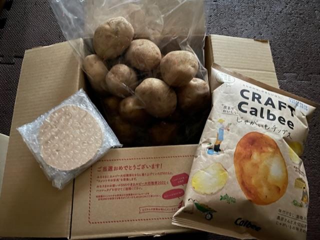 じゃがいも、珪藻土コースター、クラフトカルビーじゃがいもチップス