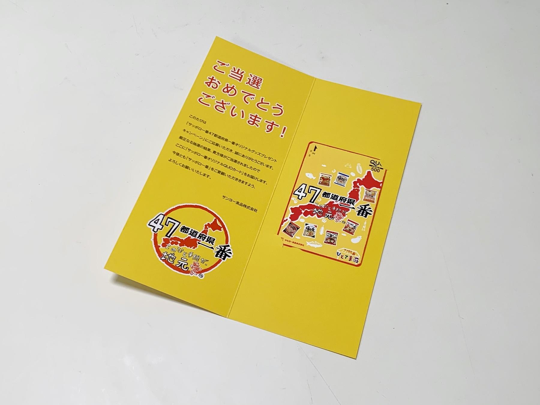 サッポロ一番オリジナルQUOカード500円分