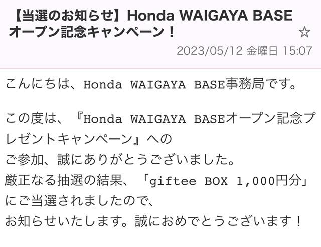 キャンペーン:『Honda WAIGAYA BASEオープン記念プレゼントキャンペーン』