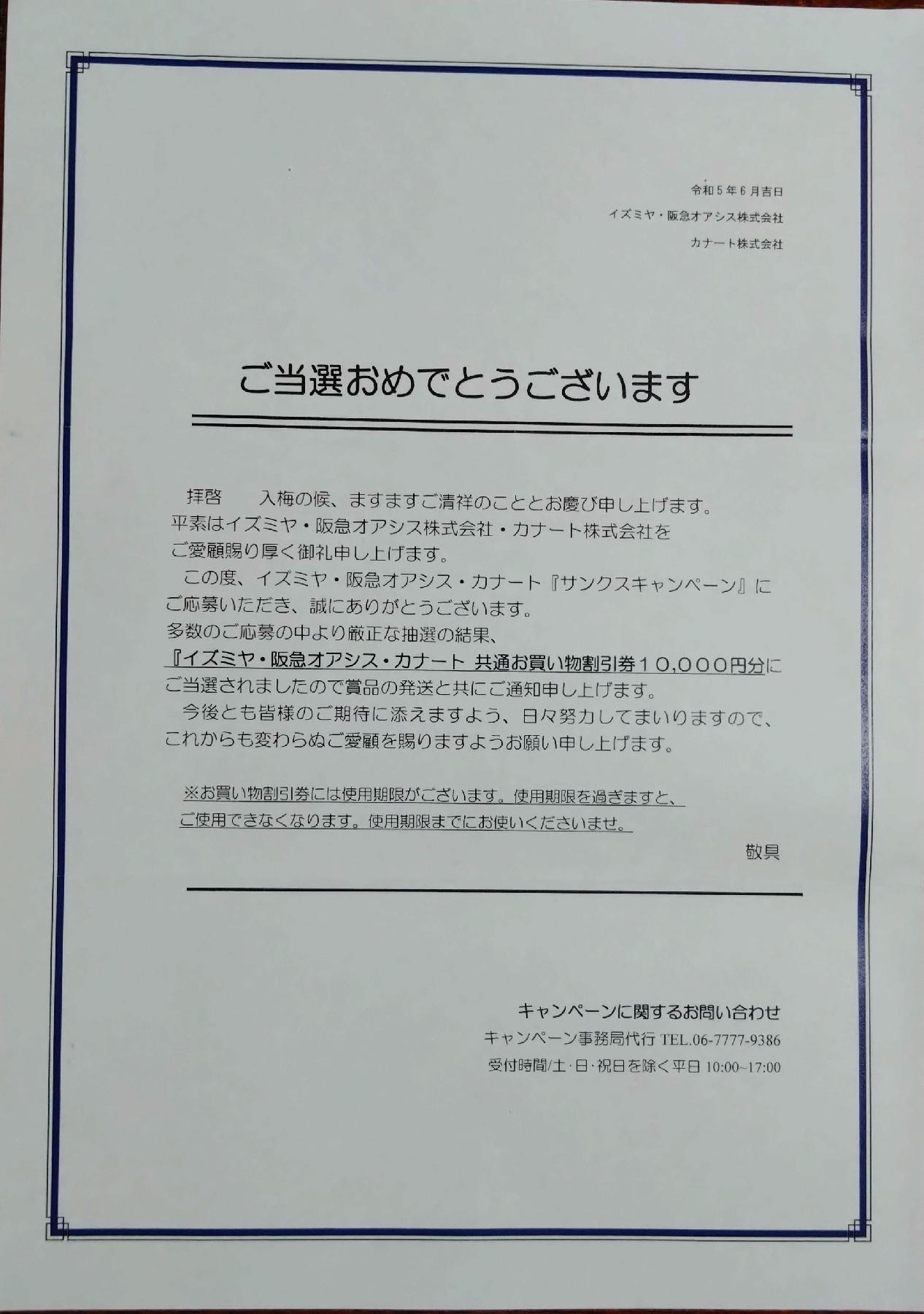 イズミヤ・阪急オアシス・カナート 共通お買い物割引券10000円分
