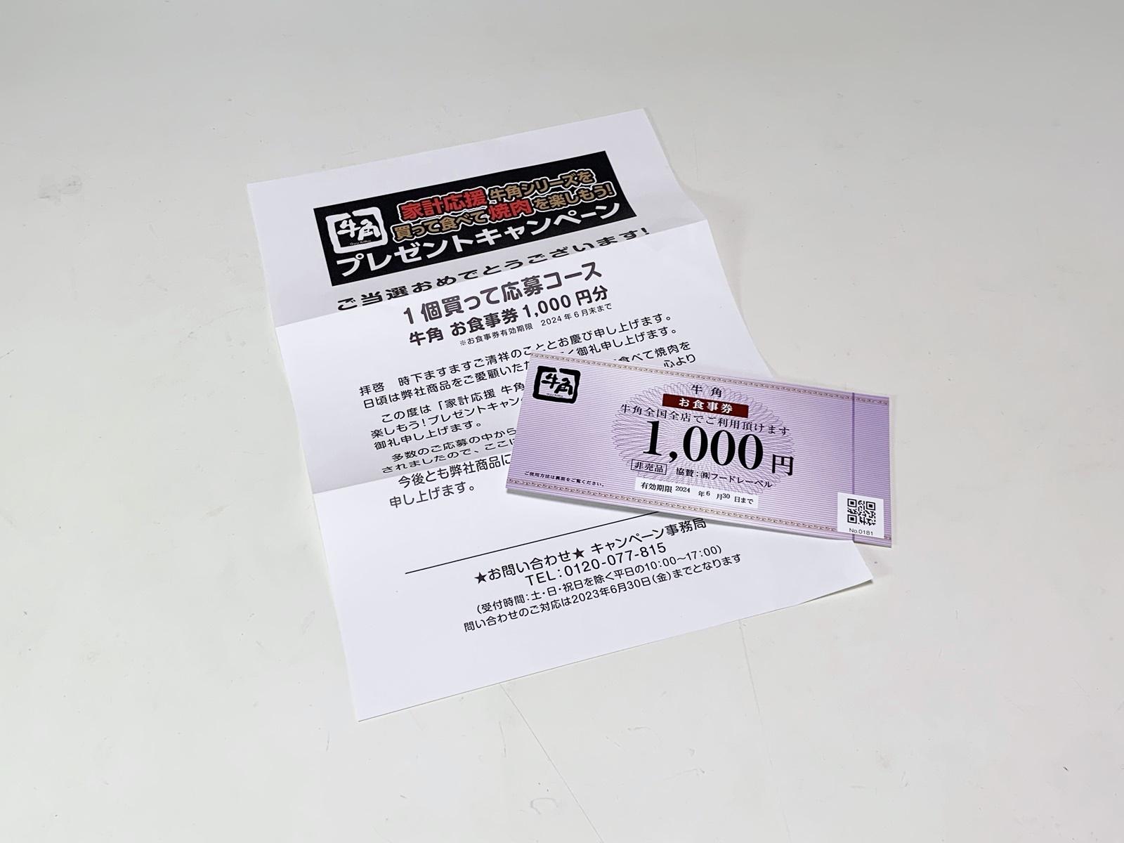 牛角お食事券1,000円分