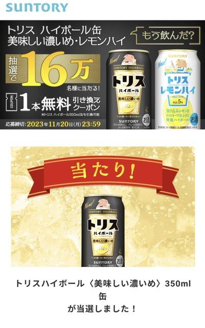 トリスハイボール缶美味しい濃いめ・レモンハイ1本無料引き換えクーポン