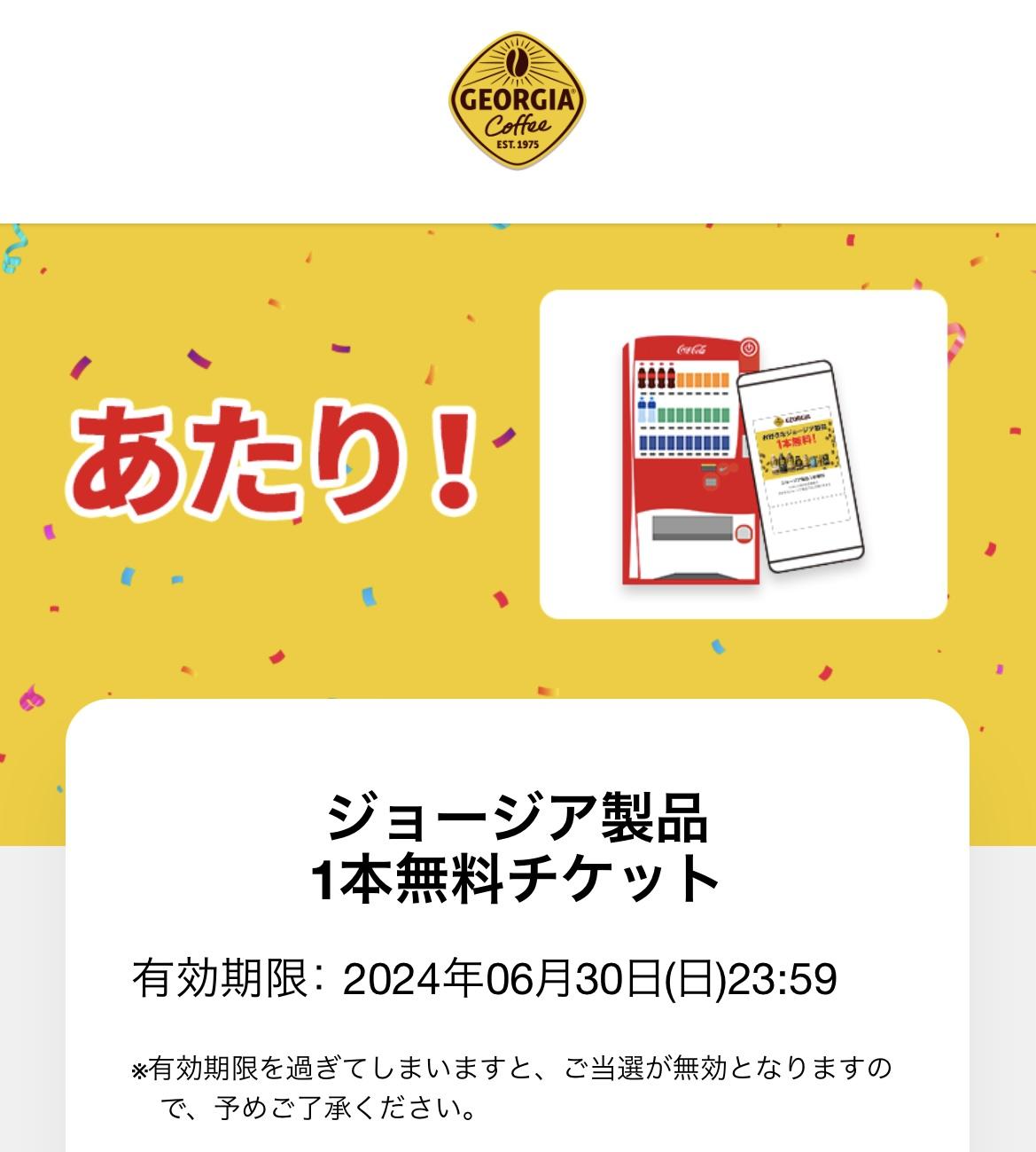 ジョージア製品1本無料チケット