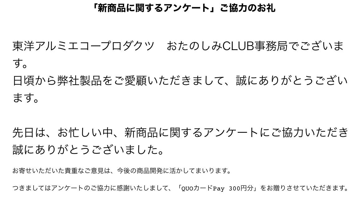 キャンペーン:「新商品に関するアンケート」