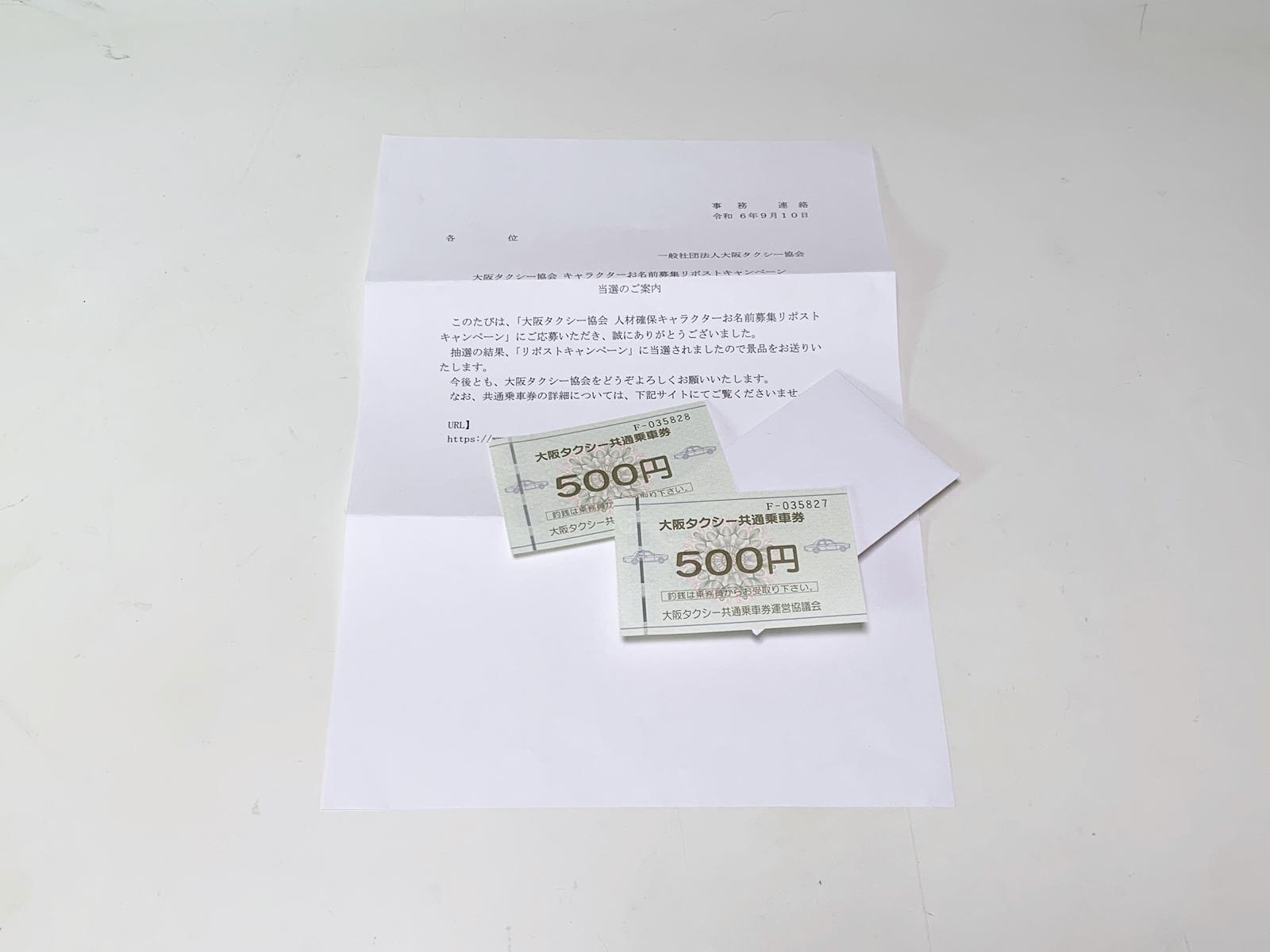大阪タクシー共通乗車券1,000円分