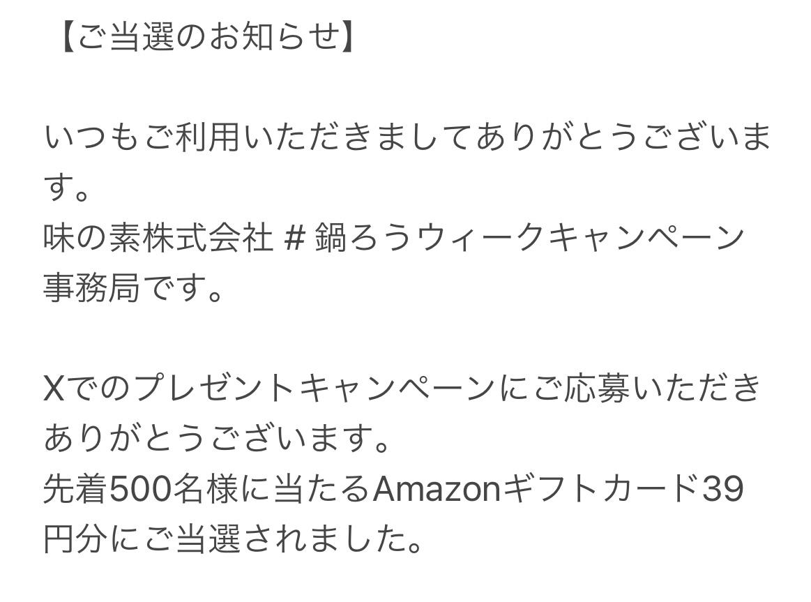 先着500名様に当たるAmazonギフトカード39円分