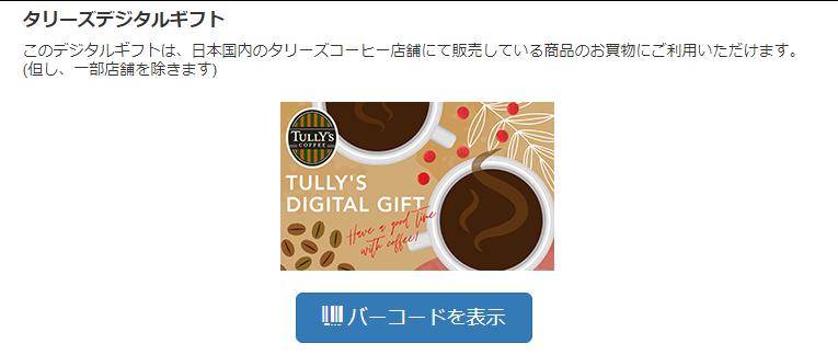 【タリーズ】デジタルギフト200円分