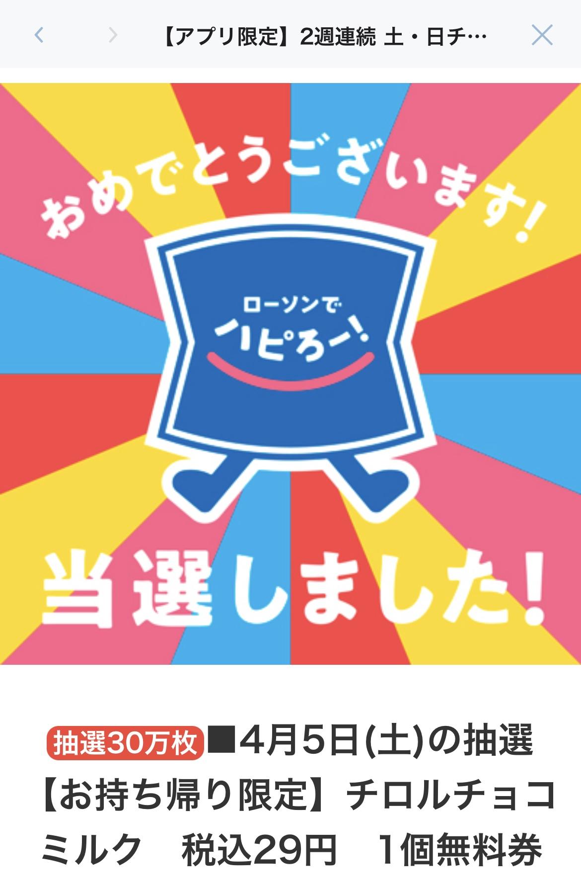 チロルチョコ1個無料券