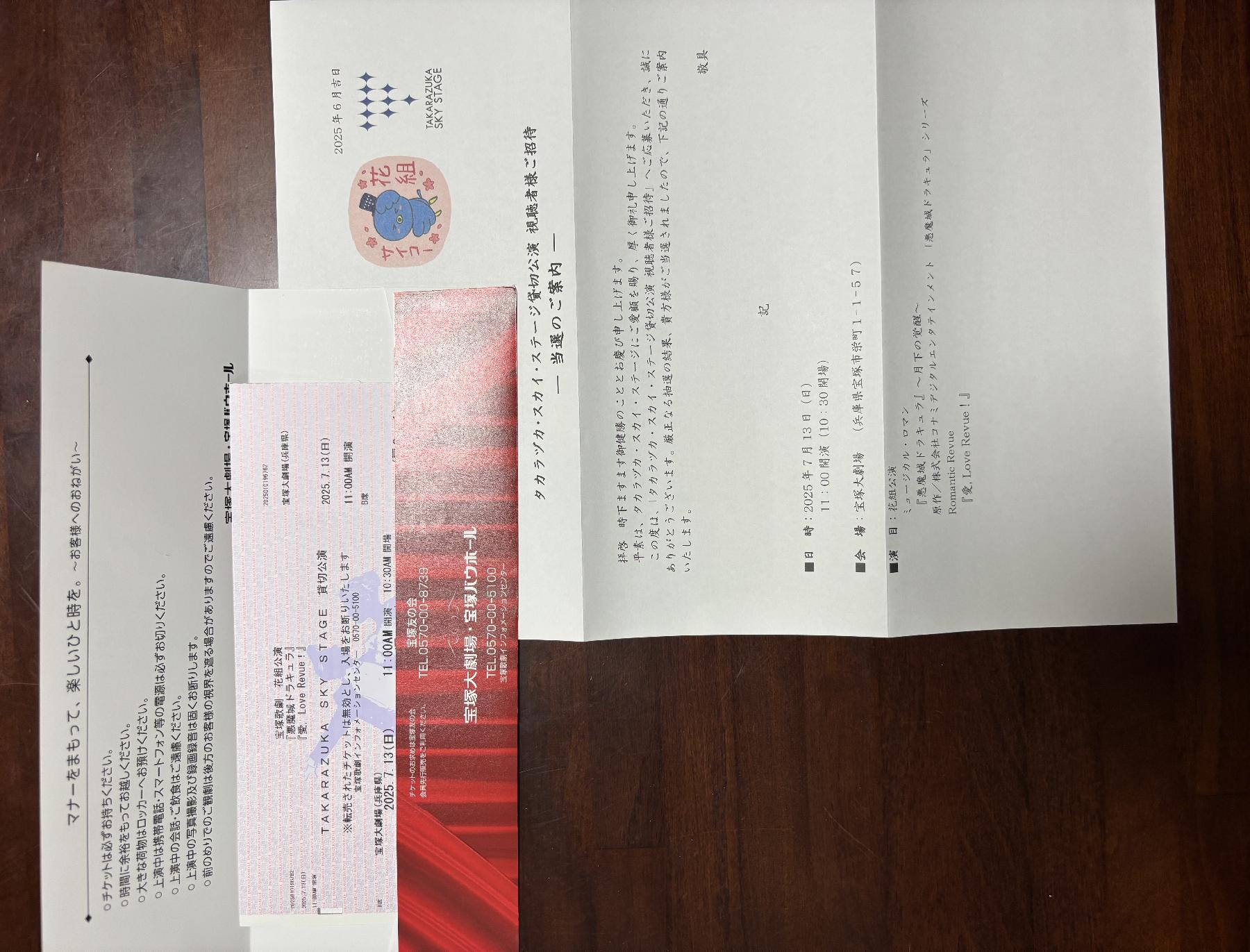 花組貸切公演 B席 チケット