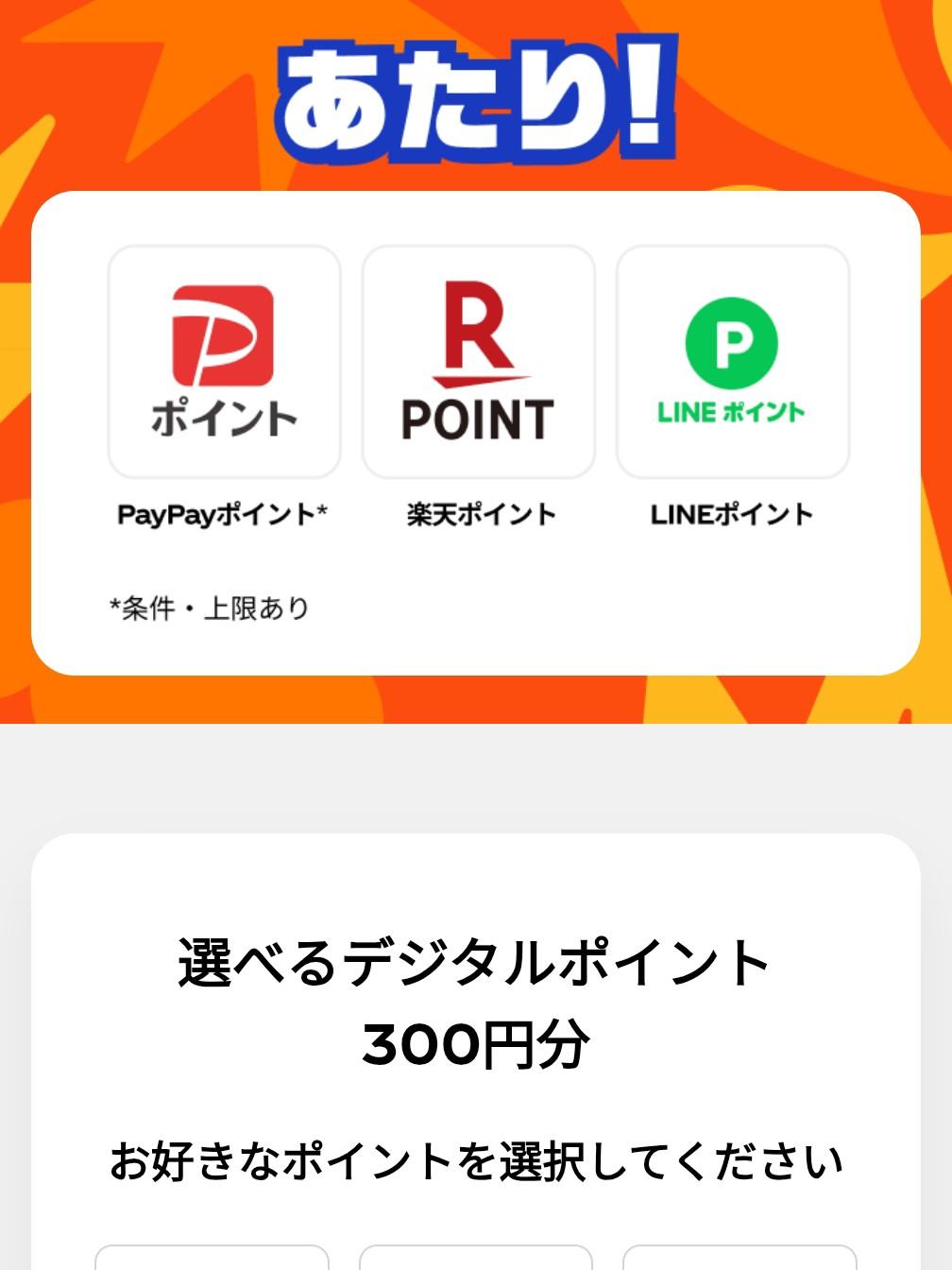 ・選べるデジタルポイント 300円分