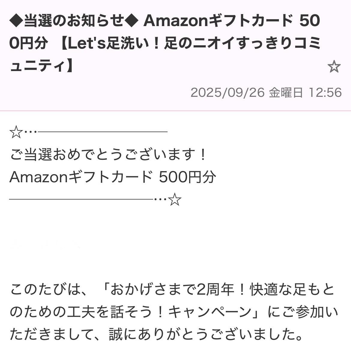 キャンペーン:おかげさまで2周年!快適な足もとのための工夫を話そう!キャンペーン」にご参加いただきまして、誠にありがとうござい