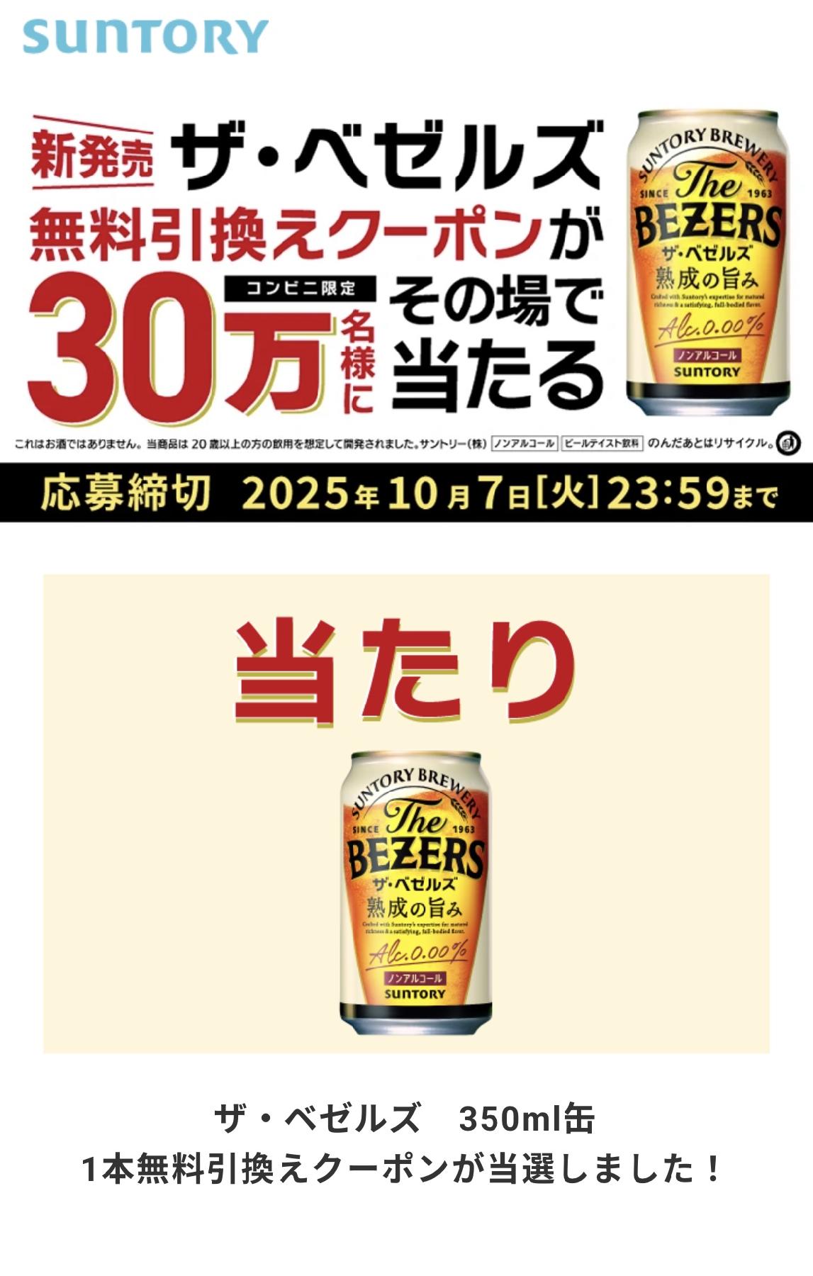 ザ・ベゼルズ 350ml缶 1本無料引換えクーポン