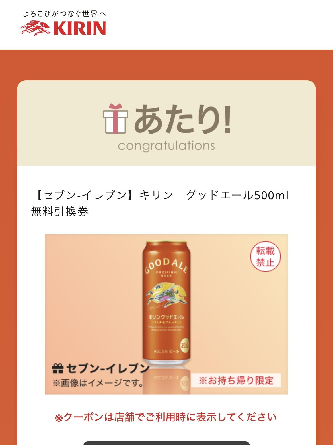 キリングッドエール500ml 無料引換券