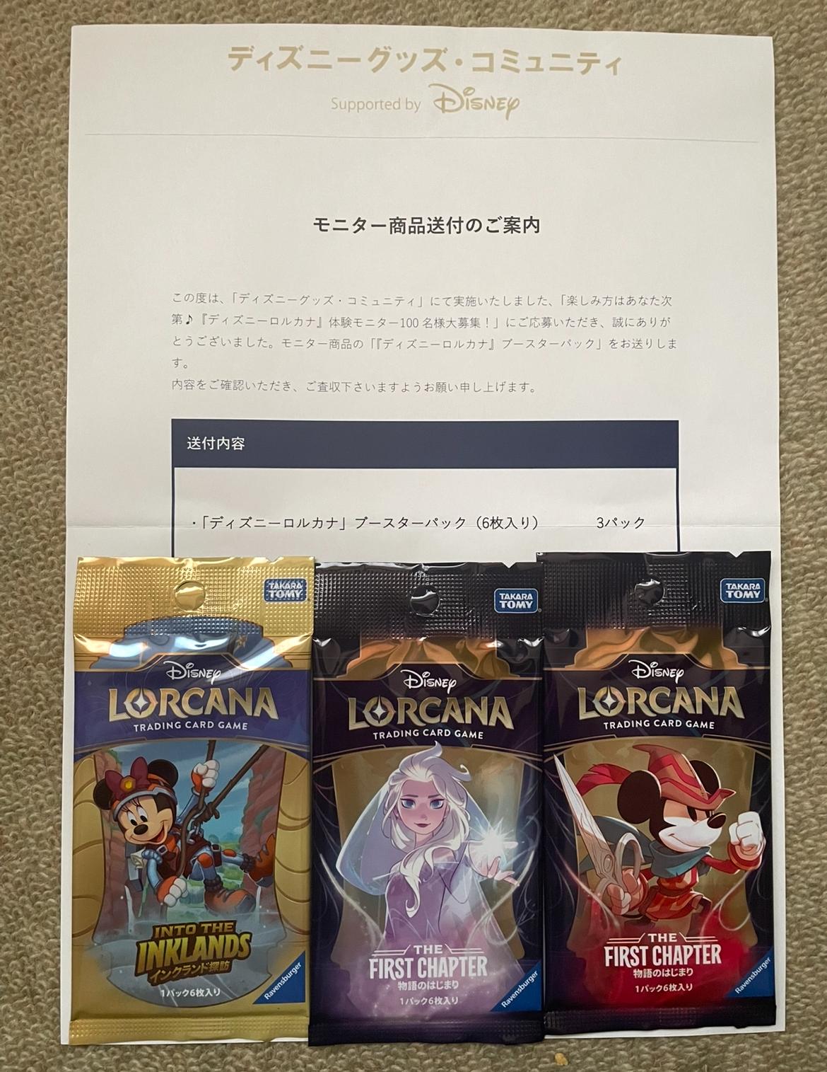 ・「ディズニーロルカナ」ブースターパック (6枚入り) 3パック TAKARA TOMY TAKARA