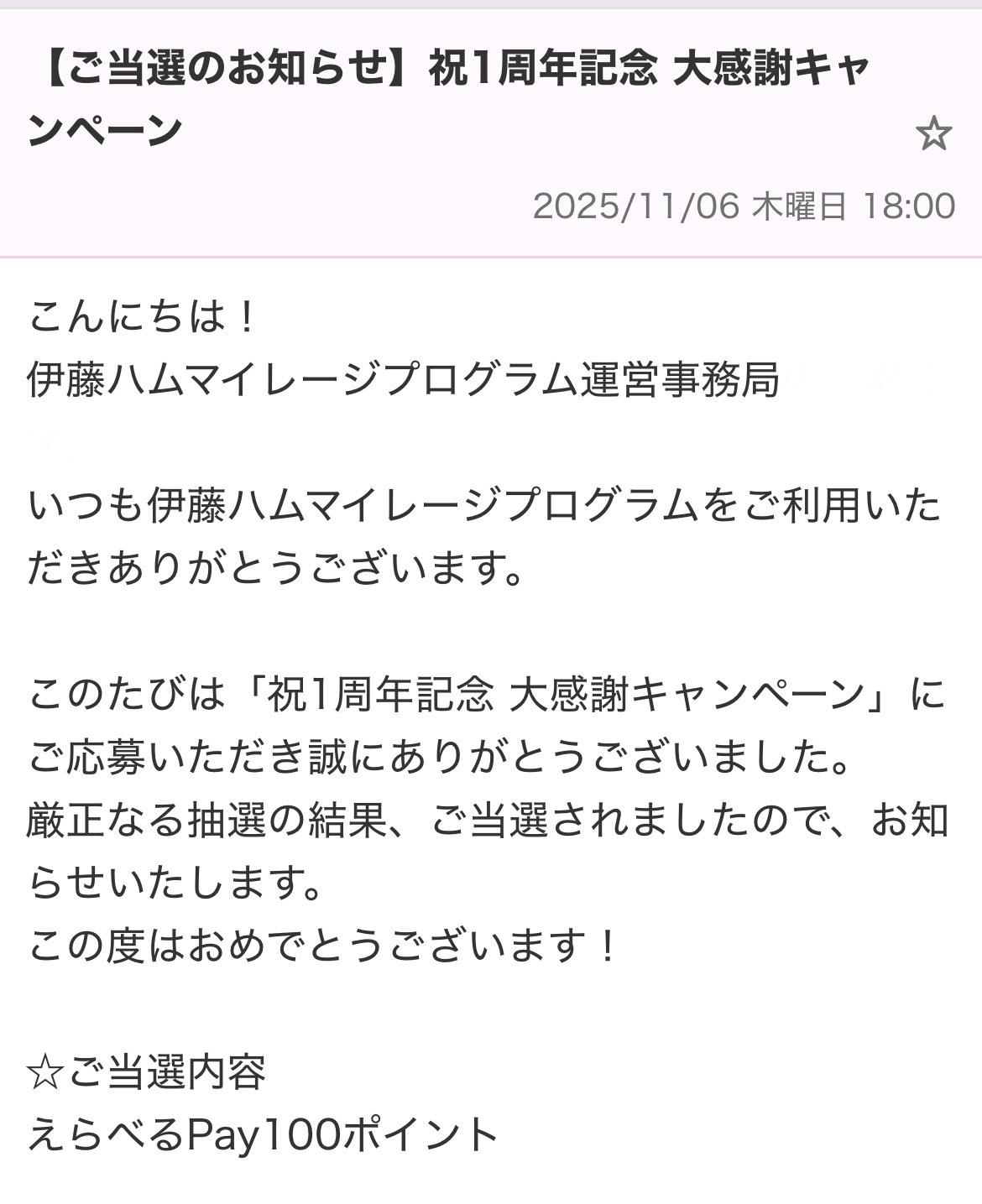キャンペーン:伊藤ハムマイレージプログラム「祝1周年記念 大感謝キャンペーン」