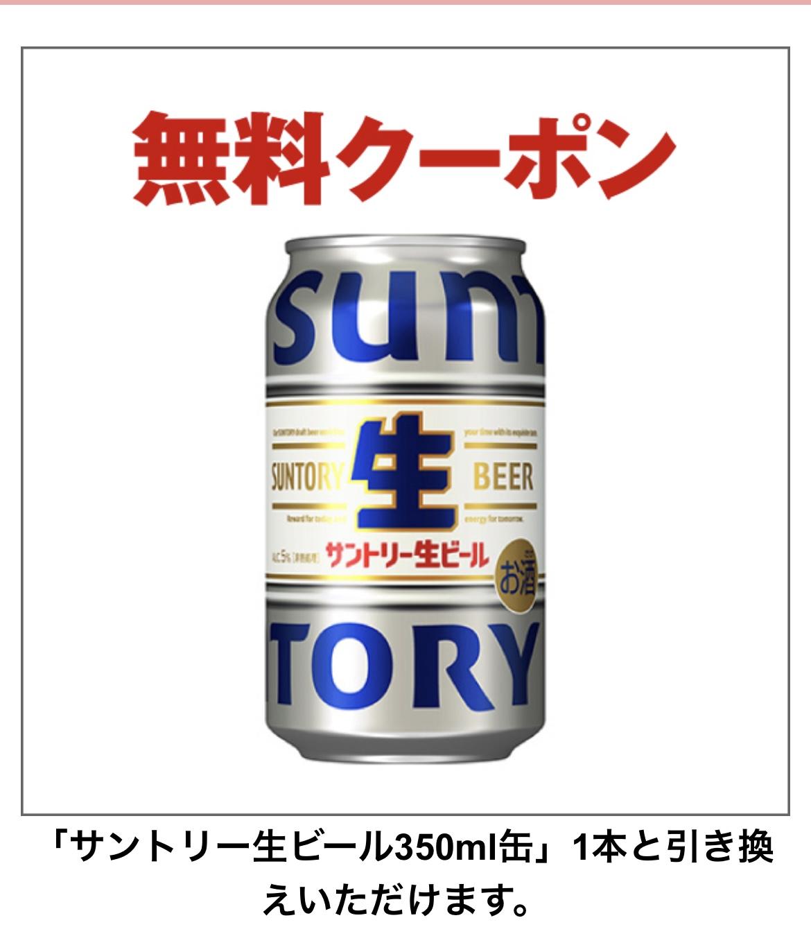 「サントリー生ビール350ml缶」1本無料