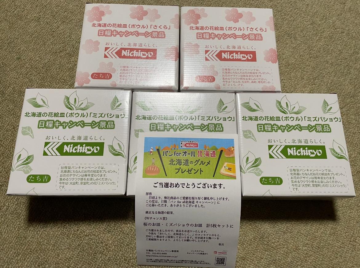 <Wチャンス賞) 桜のお皿・ミズバショウのお皿計5枚セットに