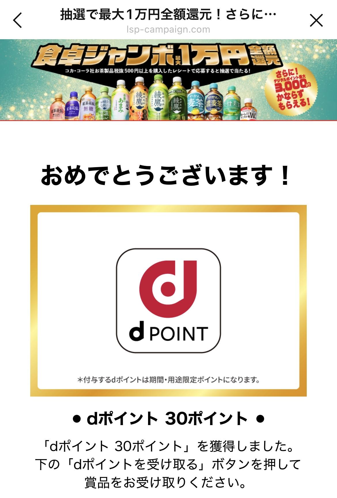 dポイント30ポイント