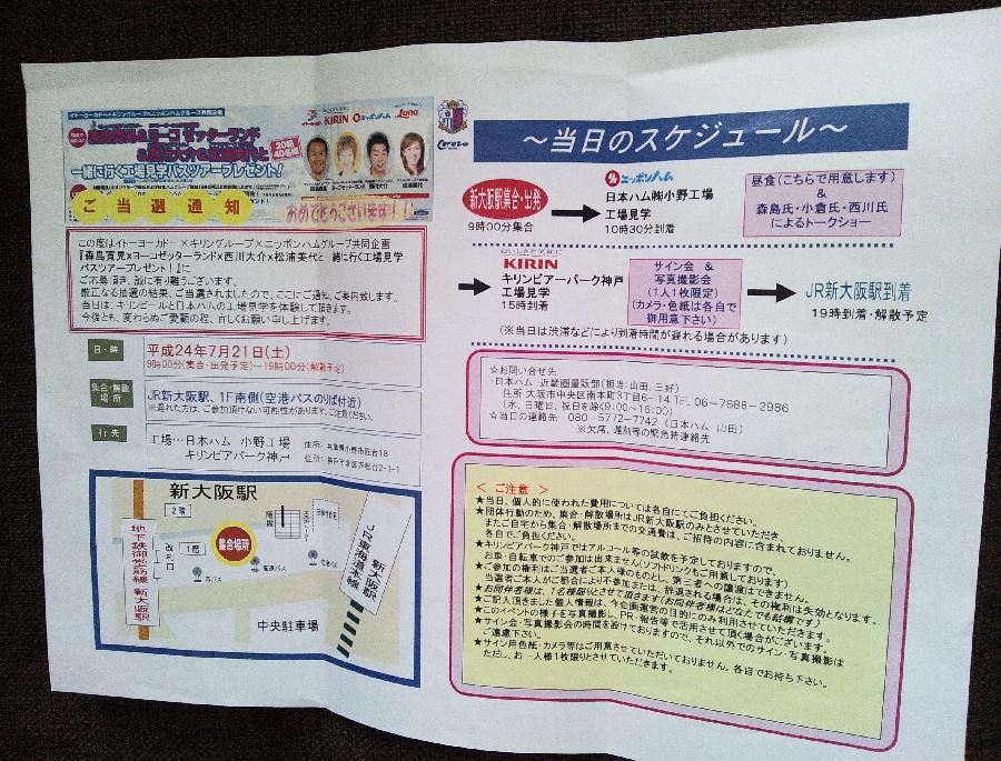 キャンペーン:森島寛晃×ヨーコゼッターランド×西川大介×松浦美代と一緒に行く工場見学バスツアー