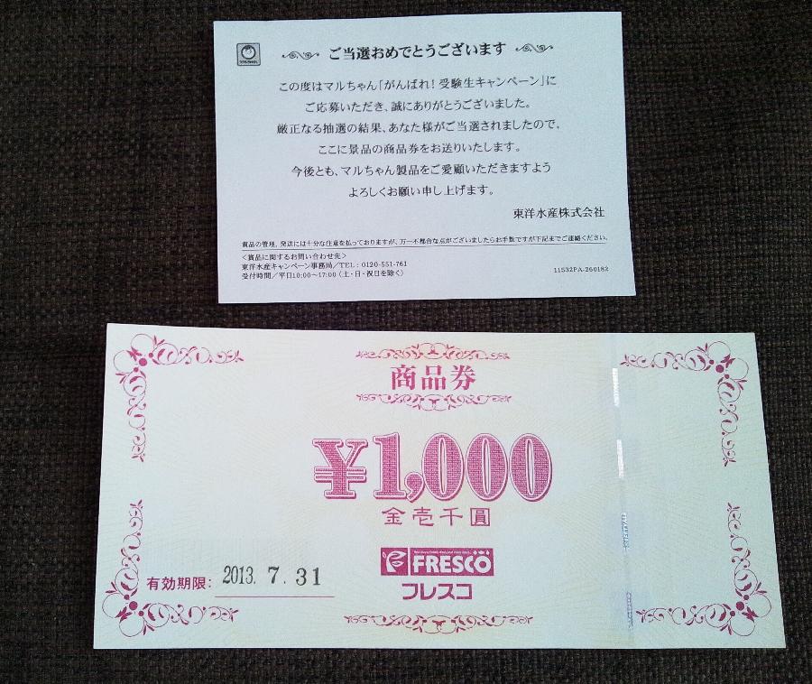 フレスコ商品券1,000円分