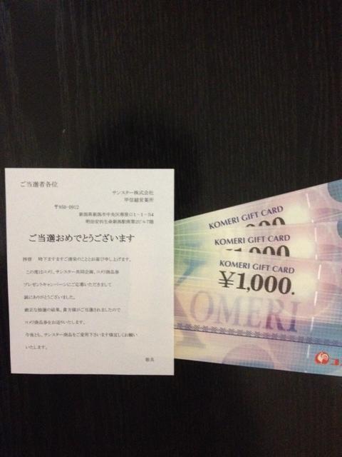 コメリ商品券3000円