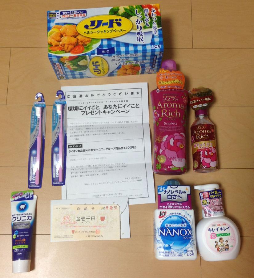 商品券1,000円分とライオン製品