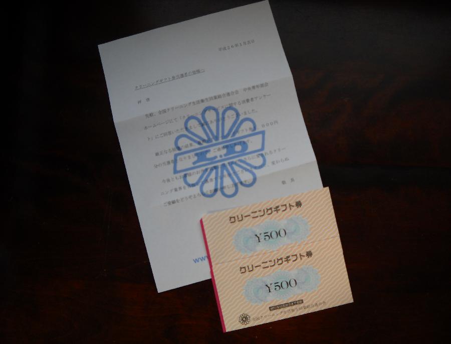 webアンケートに答えて。クリーニングギフト初当選。 (ちこ)