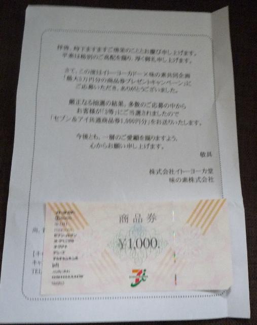 ヨーカドー商品券1,000円分
